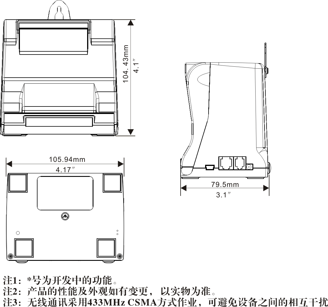 ※ 以无线方式通讯(2.4G顶牙、蓝牙)的POS票据打印机,消除桌面杂乱的通讯布线。