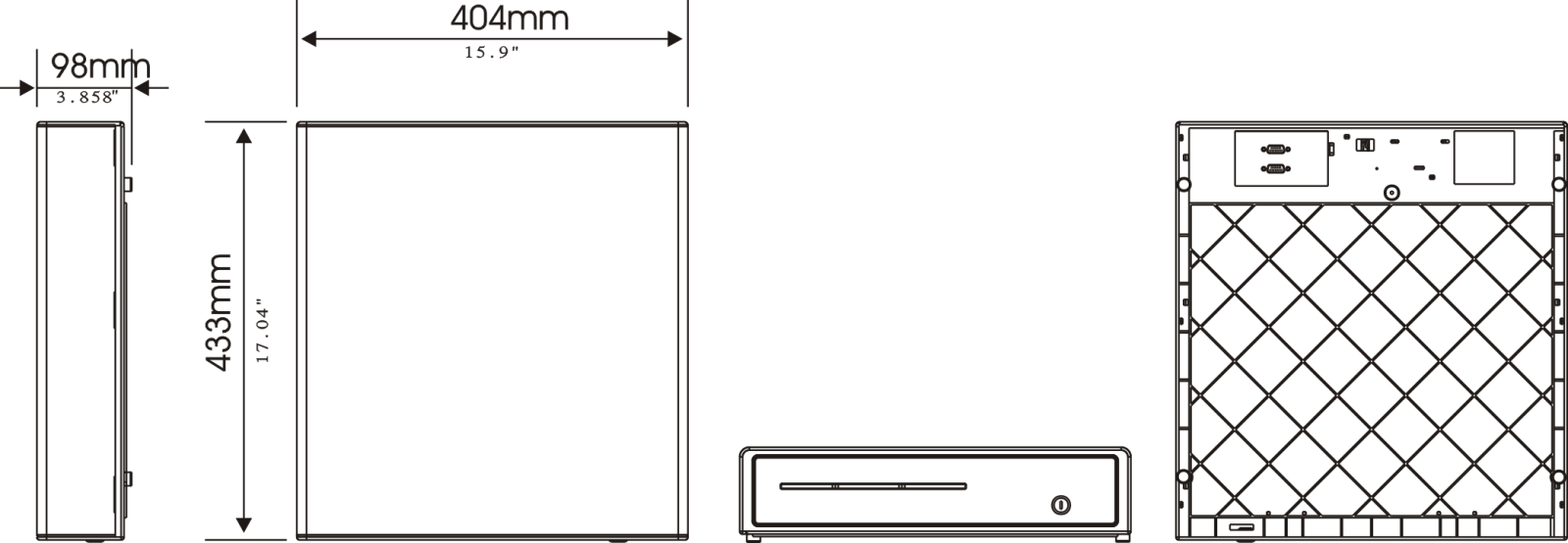 优秀功能: ※具有8种纸币存放格、5种硬币存放格。 ※钞票斜放于钱箱内,取钞找钱极为方便。 ※可在不开锁的情况下从前面缝口放入大钞、单据及发票。 ※钱箱开启具有三种方式:锁开启(选配)、底部手动开启及主机控制开启。 ※抽屉芯抽出后加盖(选购件)带至后台结帐,可快速交班不必现场点钞及暂停收银。 ※弹臂式顶出组织(传统式为弹簧式)出力均匀,闭合力小,降低工作人员疲劳。