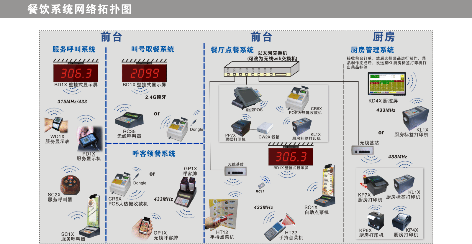 ※ 以无线方式通讯(2.4G顶牙、蓝牙)的POS票据打印机,消除桌面杂乱的通讯布线。