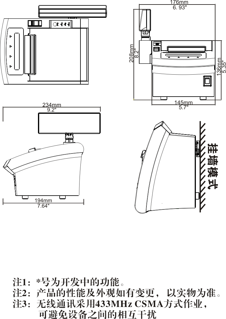 ※ 以无线方式通讯(2.4G顶牙、蓝牙、WIFI)的POS打印机,为您消除桌面上杂乱的布线。